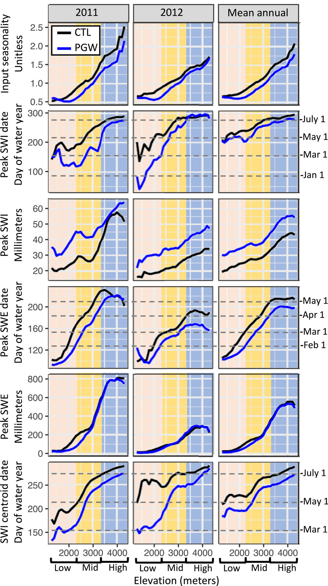 A 2023 study modeling study of the Upper Colorado River Basin found that declining snowpack will shift water availability earlier in the season and concentrate it into a narrower window of time, creating “flashier” surface water input rather than the gradual, extended melt that has historically provided steady summer water supply.* This elevation-dependent snow loss fundamentally changes when water becomes available to downstream users and ecosystems.