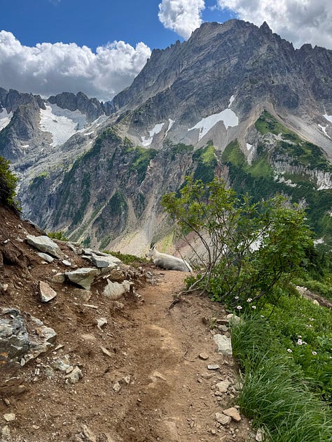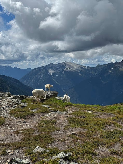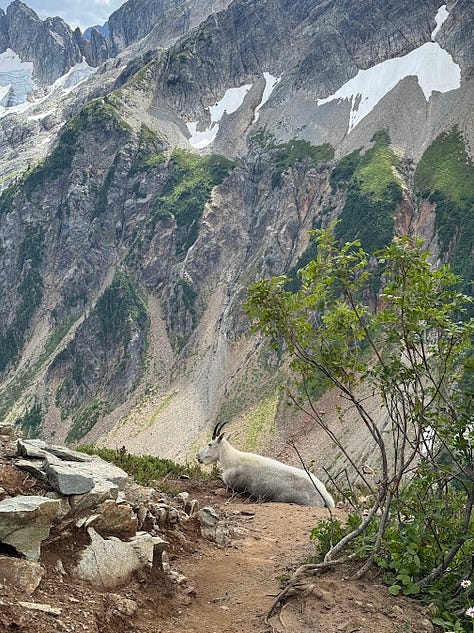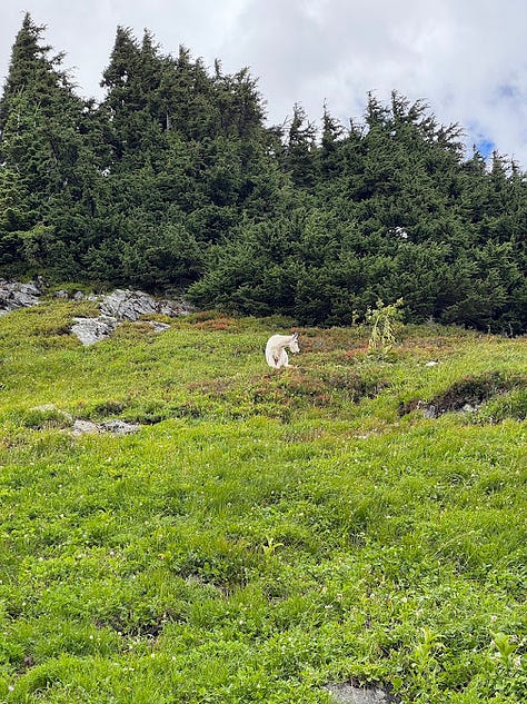 Out of all wildlife, I seem to have the most frequent experience with mountain goats. Usually they’re not a problem, but when there’s a whole family blocking the trail in multiple locations, it can make for a very slow trip back to your car.