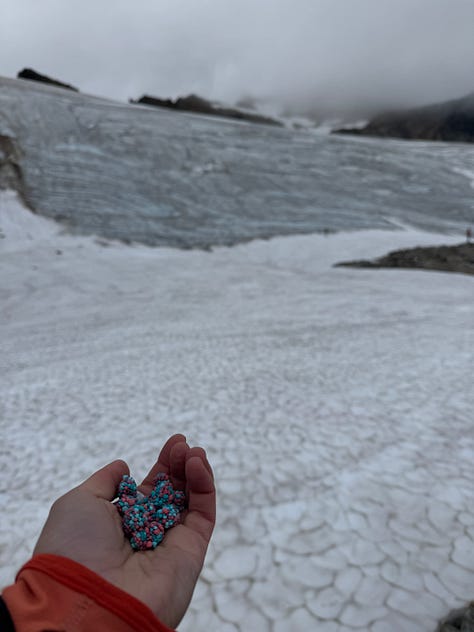 When you reach the summit the trail ends and there’s a sign pointing to the “toilet” and campsites—I can only imagine this must be the most epic spot to relieve oneself. I wanted to get closer to the glacier and find a spot for lunch so explored the ridgeline.