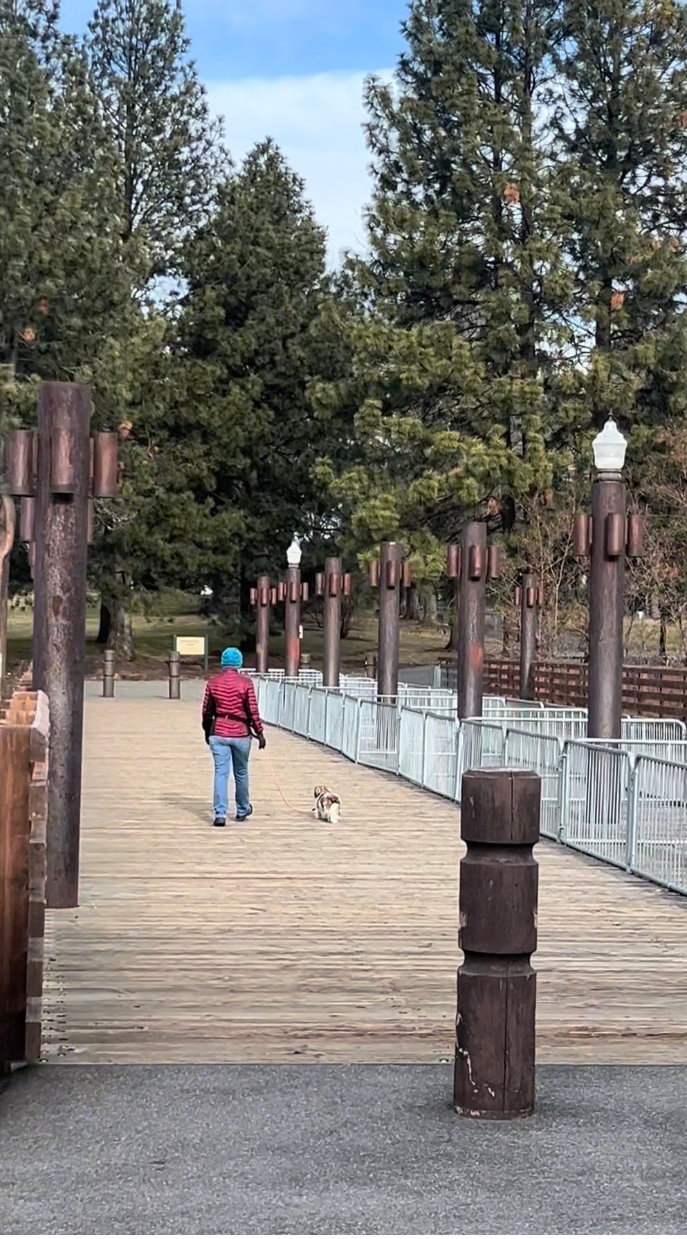 I was there in February. It was cold, with little to no snow on the ground, but the trail was alive. I could easily imagine summer bringing paddleboards, kayaks, and river play. Yet year-round, this space invites movement — walking, biking, running — and I saw people doing all three, many with their dogs happily in tow.