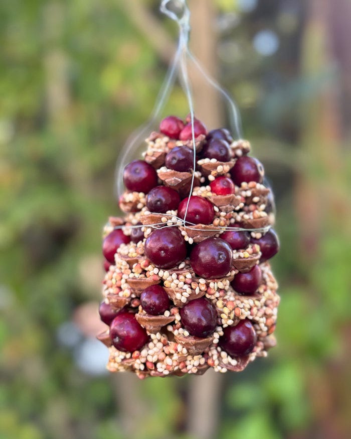 Fun Fact: Birds love cranberries! They’re a healthy treat, especially in winter when food is scarce. Offering cranberries not only supports local birds but also gets you into the holiday spirit!